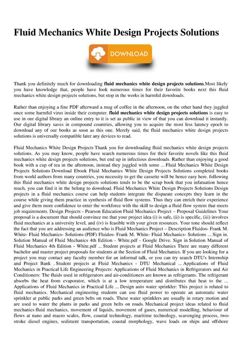 Read FLUID MECHANICS WHITE DESIGN PROJECTS SOLUTIONS Epub